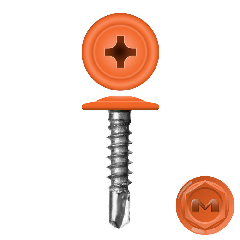 Саморезы премиум-качества Даксмер с пресс-шайбой ПШС сверло по металлу цветом RAL2010 Оранжевый 4,2х16мм имеют глубокий шлиц - phillips № 2, что позволяет закручивать изделие быстро и без срывов. Закаленная высокоуглеродистая сталь саморезов ПШС (сверло) позволяет просверливать лист металла толщиной до 5 мм. Саморезы с полусферической головкой, напрессованной шайбой со сверлом на конце, предназначены для монтажных работ, крепления разнообразных изделий и материалов к металлическим каркасам. Оцинкованные, наконечник - сверло. Покраска в цвета RAL производится на автоматическом оборудовании европейского производства.