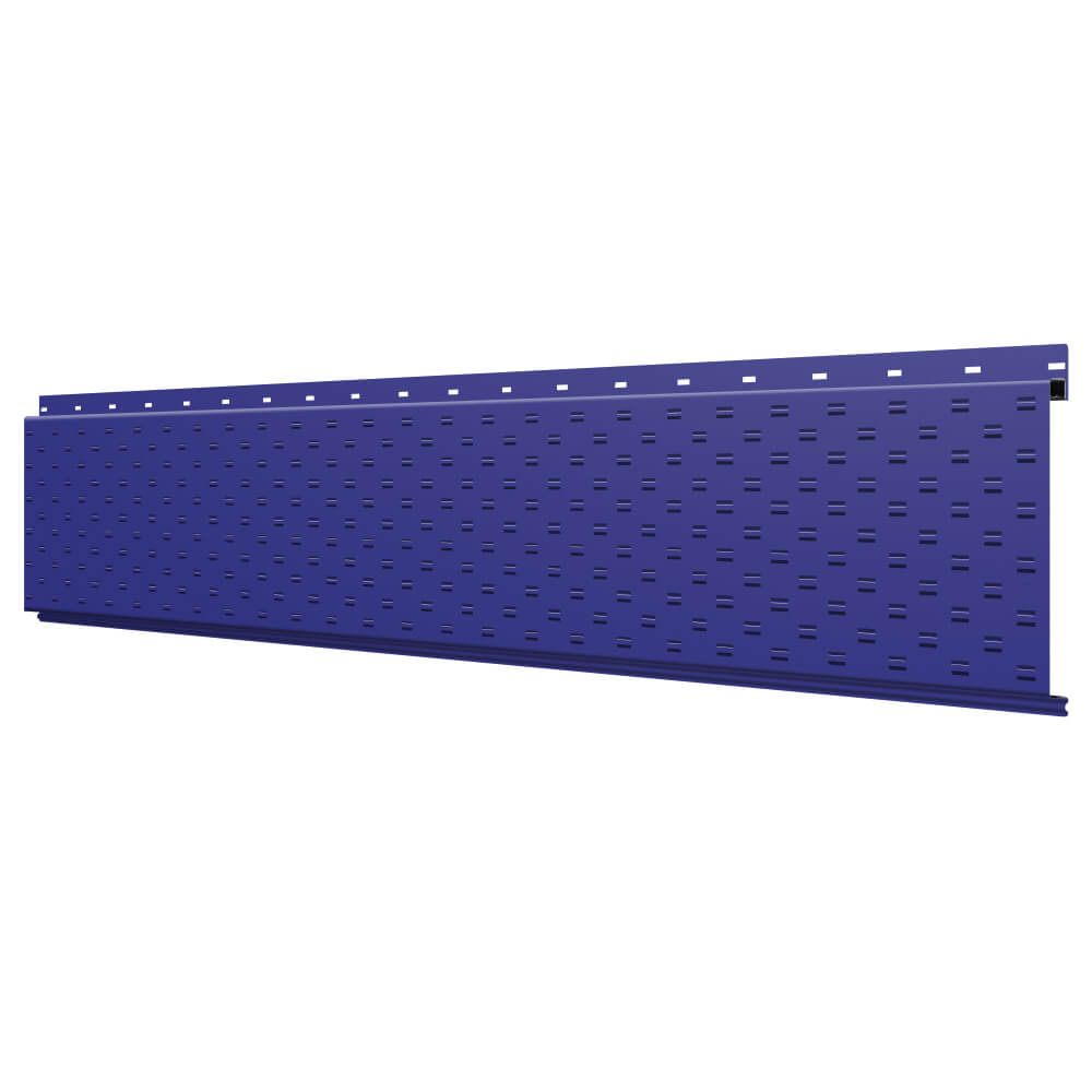 Линеарная потолочно-стеновая панель с ПЕРФОРАЦИЕЙ для вентиляции цвет RAL5002 Синий Ультрамарин применяется в качестве софитов для подшивы крыши, наружной и внутренней отделки потолков, стен, фронтонов фасада дома в Петропавловске-Камчатском.