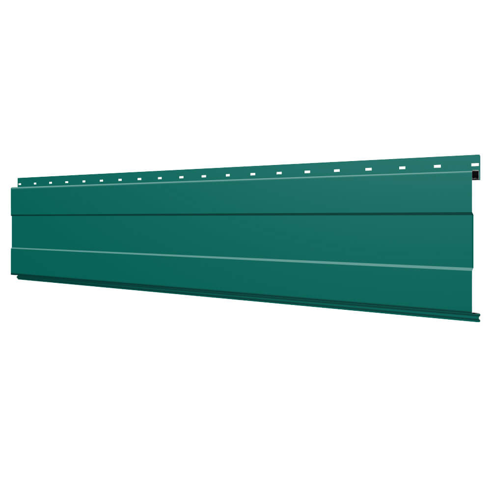 Линеарная потолочно-стеновая панель с ПОЛОСОЙ усиленная цвет RAL6026 Опал применяется в качестве софитов для подшивы крыши, наружной и внутренней отделки потолков, стен, фронтонов фасада дома в Петропавловске-Камчатском.