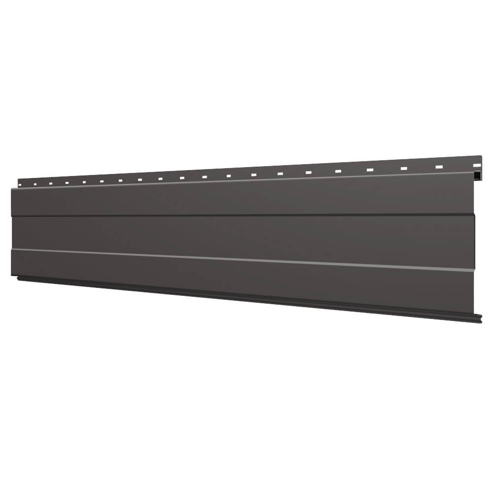Линеарная потолочно-стеновая панель с ПОЛОСОЙ усиленная цвет RAL8019 Темный Шоколад применяется в качестве софитов для подшивы крыши, наружной и внутренней отделки потолков, стен, фронтонов фасада дома в Петропавловске-Камчатском.