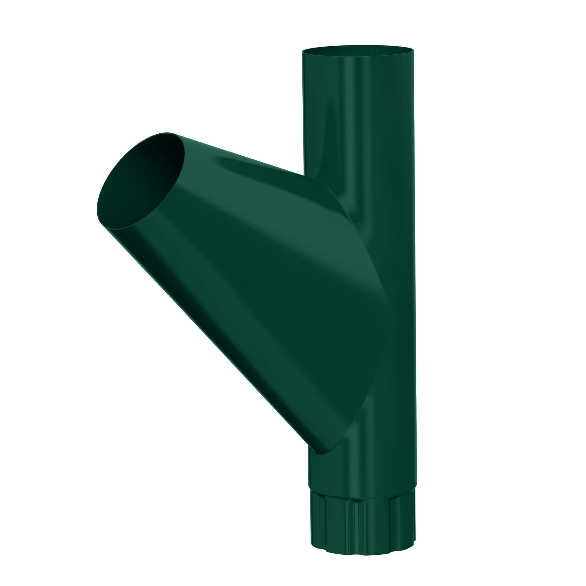 Тройник трубы водосточной d100мм RAL 6005 Зеленый металлический - элемент водосточной системы, предназначенные для развода водосточных труб. Применяется в случае, когда к одному стояку подводятся трубы с двух воронок. Тройник имеет обжим с нижней стороны и устанавливается аналогично водосточной трубе. Широкий раструб для входа трубы сбоку позволяет подводить трубу под разным углом.