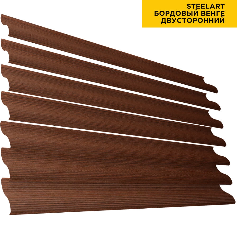 Ламель Еврожалюзи металлическая S-образная, цвет под дерево Бордовый Венге SteelArt Россия двухстороннее покрытие, длина любая кратно 1см под заказ - для забора-жалюзи, беседки, перголы в Петропавловске-Камчатском.