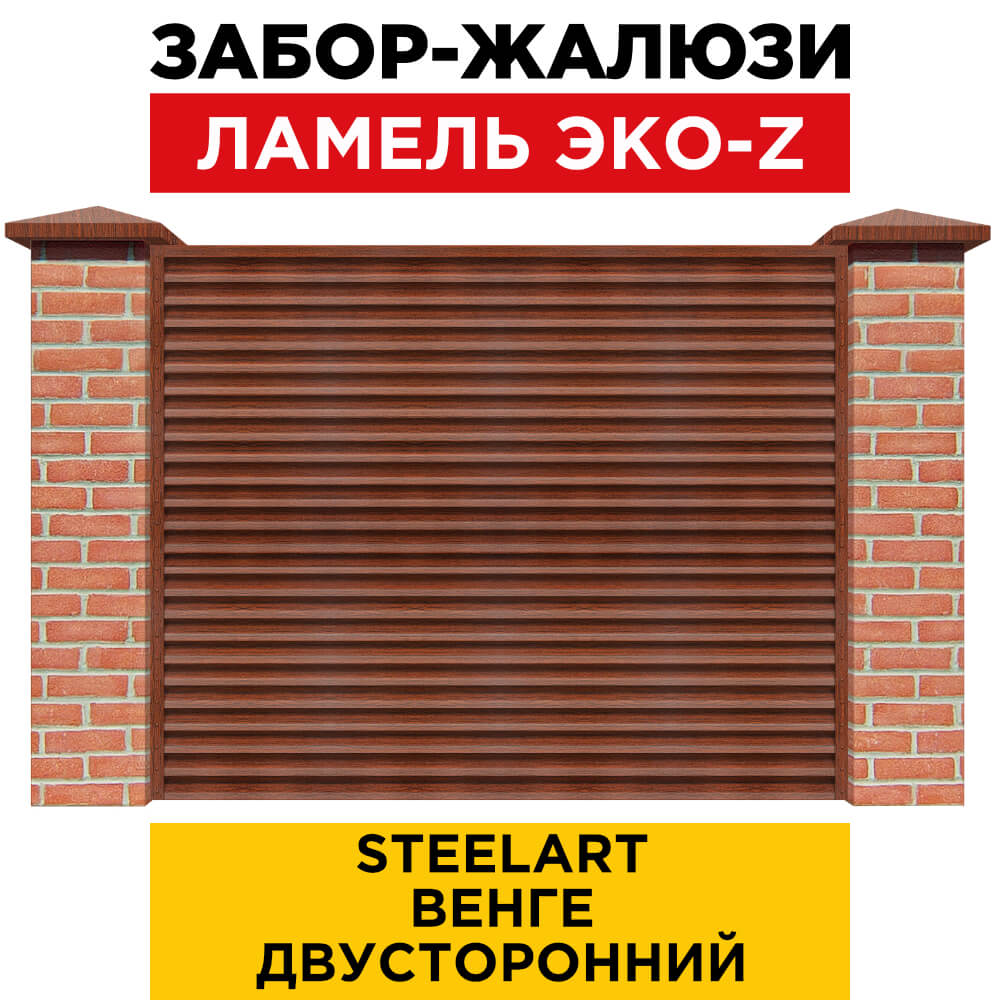 Ламель металлическая Z-образная простая ЭКО-Z, цвет под дерево Венге SteelArt двухстороннее покрытие, длина любая кратно 1см под заказ - для забора-жалюзи, беседки, перголы в Петропавловске-Камчатском